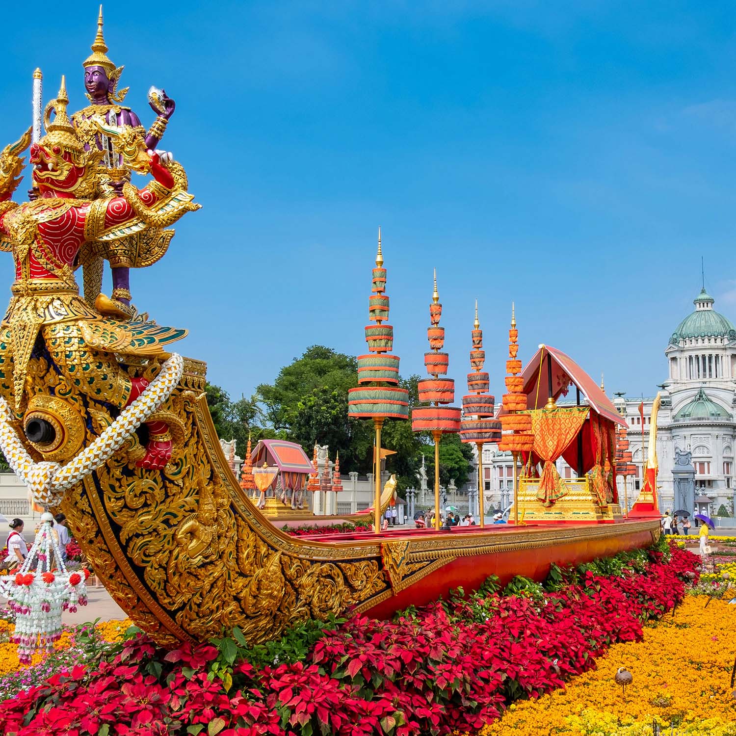 Llegada al aeropuerto Internacional de Bangkok, recepción, traslado al hotel.Traslado en autobús para tener una vista panorámica por el Gran Palacio de Bangkok, el cual ofrece una perspectiva impresionante de la ciudad. Al mirar hacia el horizonte, se pueden ver los templos y edificios históricos como el Wat Phra Kaew y el Wat Arun, rodeados de modernos rascacielos y calles bulliciosas. A lo lejos, el río Chao Phraya serpentea a través de la ciudad, reflejando la luz del sol y ofreciendo un contraste tranquilo con el ajetreo urbano; continuamos hacia Chinatown donde las calles estrechas y sinuosas se llenan de mercados callejeros, tiendas y restaurantes que exhiben una rica mezcla de arquitectura china y tailandesa. El aroma de comida se mezcla con el olor a incienso y flores, creando una experiencia sensorial única; seguiremos al mercado de flores, el cual se convierte en un mar de colores vibrantes y fragancias intensas. Tendremos una vista panorámica de El Parlamento edificio diseñado en un estilo arquitectónico tradicional tailandés con influencias modernas, se alza majestuosamente sobre el río Chao Phraya. Finalizaremos con una vista del Monumento a la Democracia ubicado en el corazón de la ciudad, un símbolo de la lucha por la democracia y la libertad en Tailandia. Alojamiento.