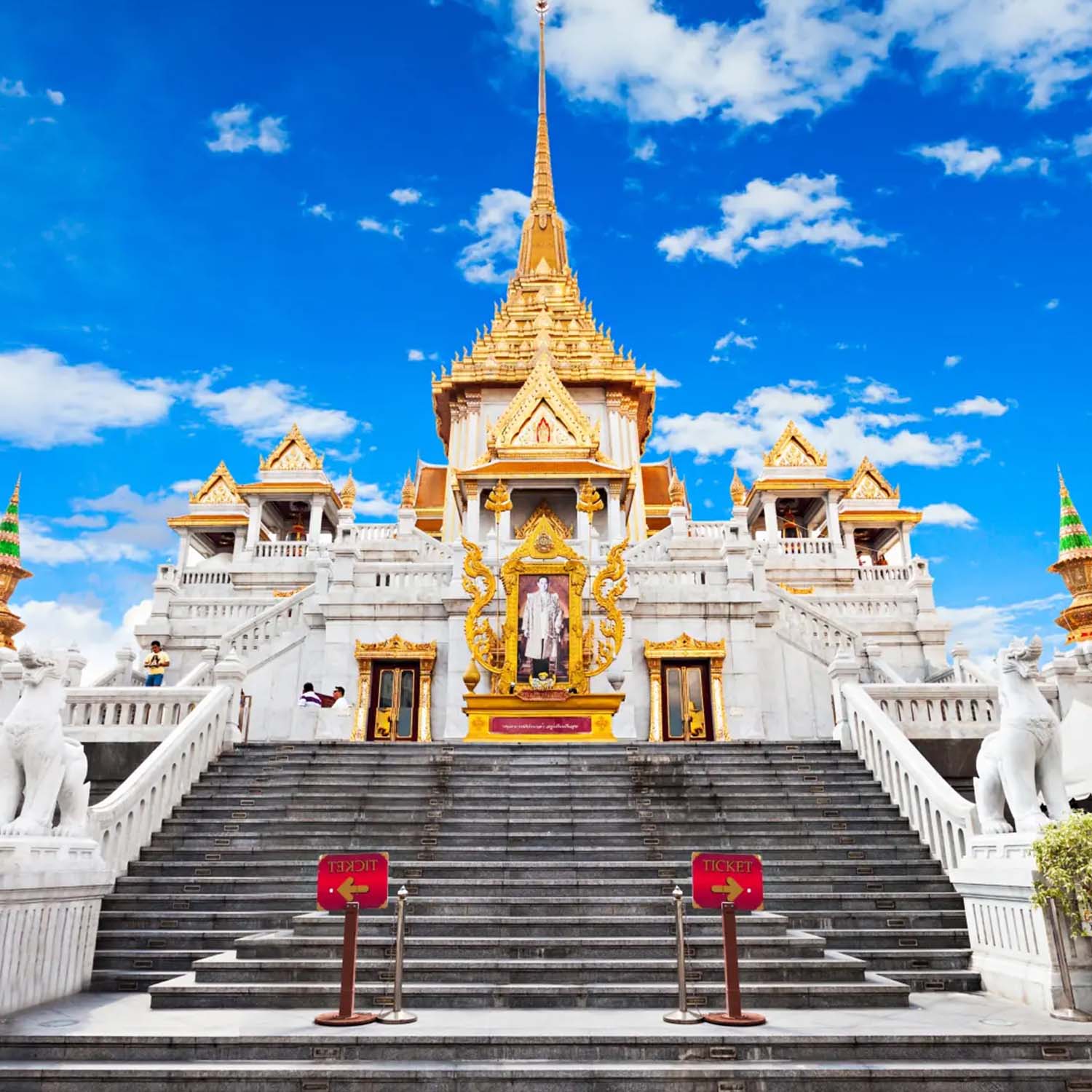 Excursión de medio día para disfrutar los más importantes lugares de Bangkok: empezamos con el Wat Trimitr, antiguo templo cuyo exterior dorado alberga la estatua de Buda de oro macizo más grande del mundo. Con un peso de 5,5 toneladas y una altura de 3 metros. Pasando por China Town, continuamos hasta el Wat Pho, el gran complejo real de templos que alberga un Buda Reclinado de 46 metros de longitud y los chedis (tumbas) de los reyes. Uno de los templos más antiguos de Bangkok, el Wat Pho, fue declarado monasterio real durante el reinado del rey Rama I. Terminamos la excursión visitando el Gran Palacio, uno de los más bellos ejemplos de las cortes de Siam. Antiguamente solía ser utilizado como residencia de los reyes de Tailandia. Aquí se pueden admirar palacios usados en distintas ocasiones: el palacio de los funerales, el palacio de las recepciones, la sala del trono, la sala de la coronación, la casa de los invitados reales y el maravilloso templo del Buda Esmeralda.