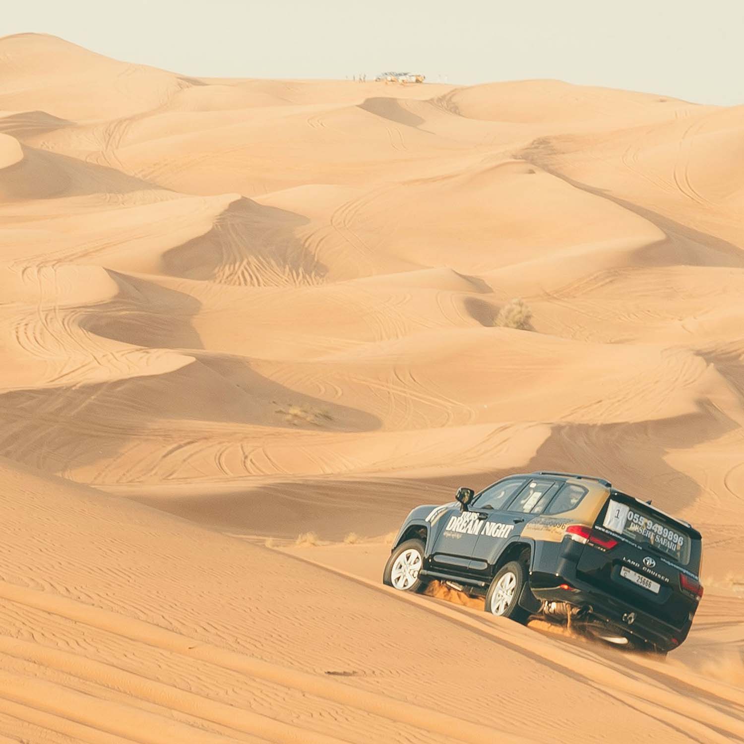 Los Land Cruisers los recogerán para un excitante trayecto por las fantásticas altas dunas, con posibilidad de realizar sandboard. Nos dirigiremos a nuestro campamento en el desierto donde tendremos la oportunidad de montar un camello.