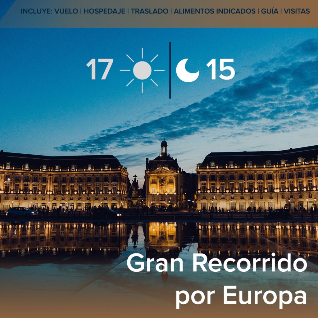 Descubre Europa en 17 días, visitando España, Francia, Suiza e Italia, con vuelos, hoteles y traslados incluidos. ¡Un recorrido completo por lo mejor del continente!