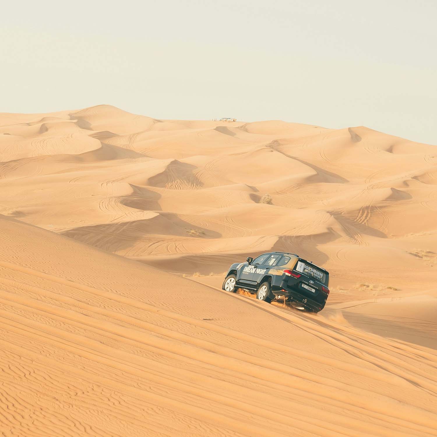 Los Land Cruisers (6 personas por vehículo) los recogerán para un excitante trayecto por las fantásticas altas dunas. Podrá hacer unas fotos únicas de la puesta de sol árabe. Una vez que desaparezca el sol, detrás de las dunas de arena dorada, nos dirigiremos a nuestro campamento en el desierto. El olor a la fresca Brocheta a la parrilla y el cordero, las hogueras, el olor a las tradicionales pipas de agua y los relajantes sonidos de la música árabe, le invitara a una tarde inolvidable. Después de haber repuesto fuerzas tras la suntuosa cena, una bailarina, le mostrara el antiguo arte de la Danza del Vientre. El pintarse con Henna, también se encuentra incluido, al igual que el agua, refrescos, te y café. Regreso al hotel.