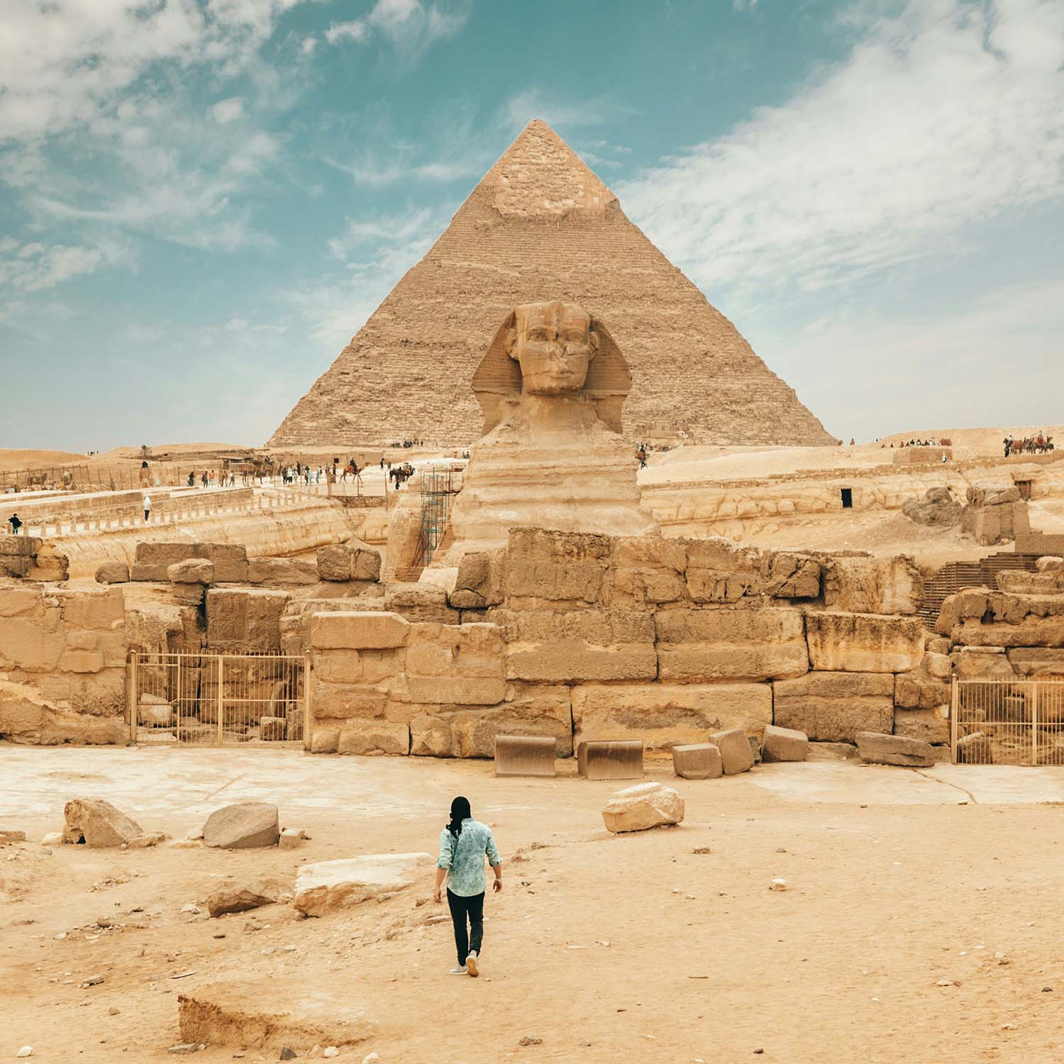 Desayuno. Por la mañana visita a las pirámides de Giza, complejo funerario formado por las pirámides de Keops, una de las siete maravillas del Mundo, Kefrén, Mikerinos, la Esfinge de Kefrén y el Templo del Valle. Tarde libre. Alojamiento.
