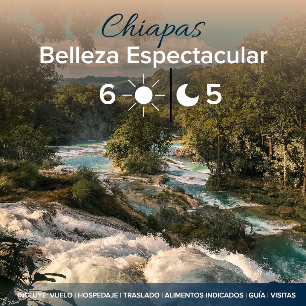 Descubre Chiapas en 6 días, visitando el Cañón del Sumidero, Palenque y más, con vuelos, hoteles y traslados incluidos. ¡Una experiencia increíble!
