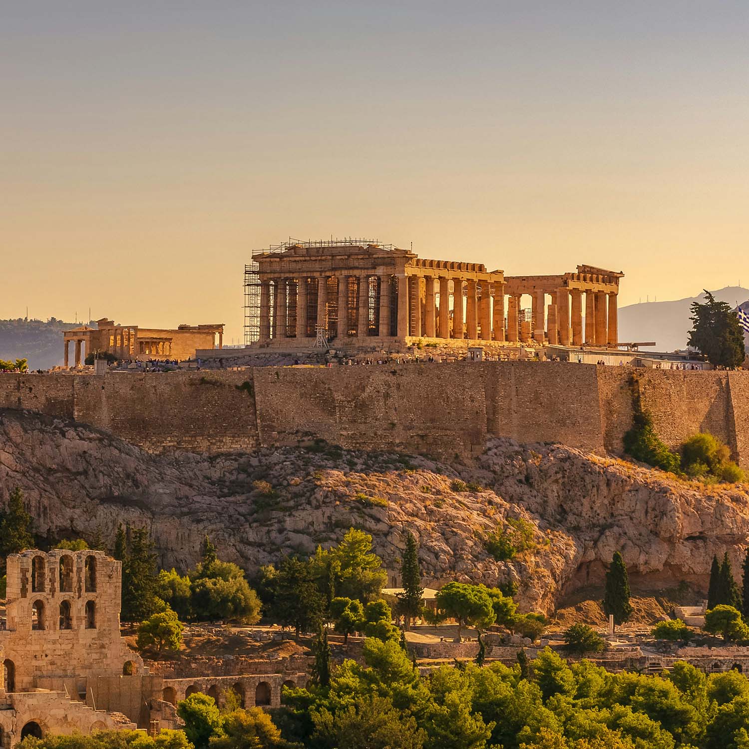 En Atenas veremos uno de los monumentos más conocidos mundialmente, el Acrópolis. Acrópolis es una ciudadela griega construida sobre las ruinas de un poblado tracio pre griego en una colina en el centro de la ciudad moderna. Acrópolis preserva varios templos de la época helenística y proporciona vistas inolvidables de la ciudad y la bahía de Atenas.