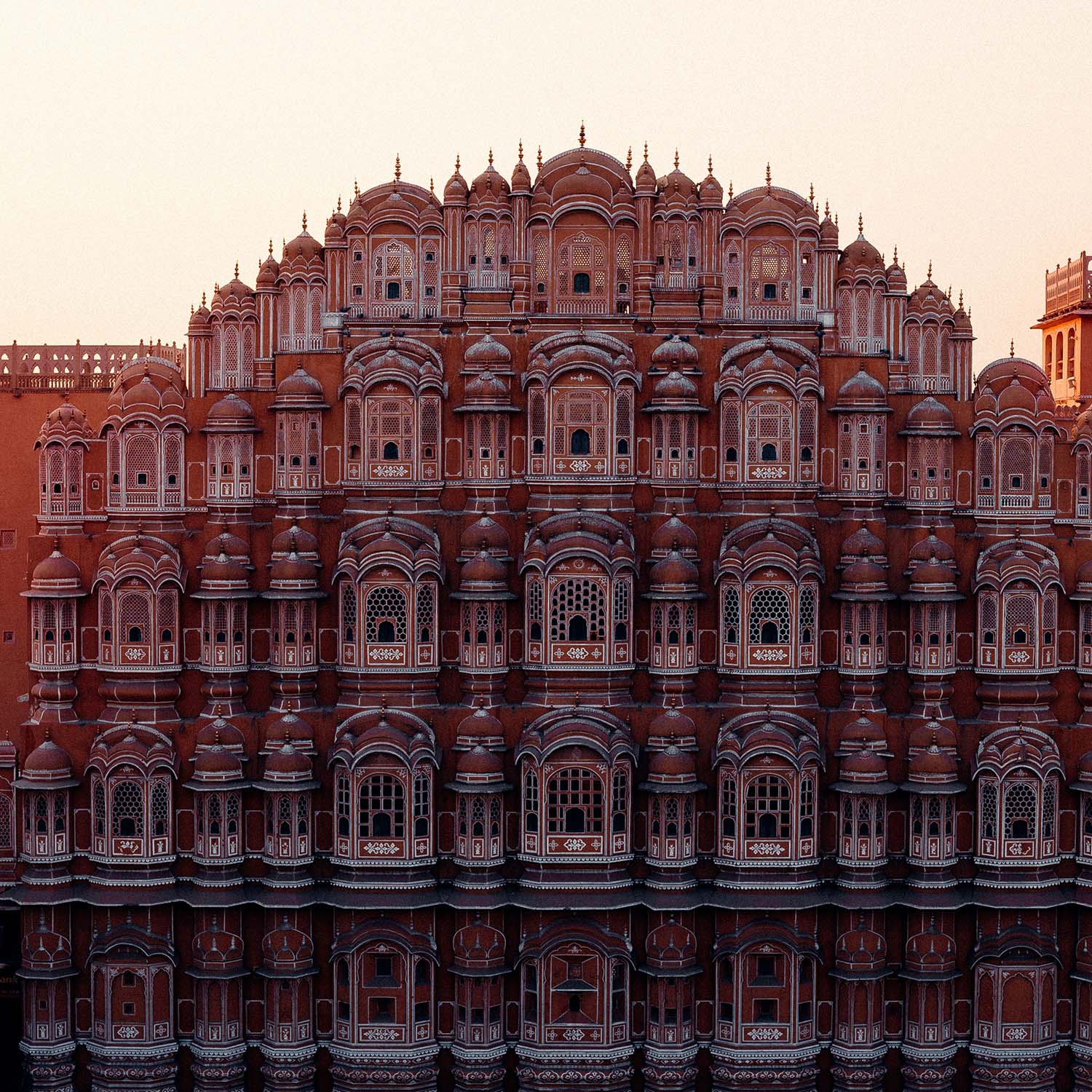 Desayuno. Traslado a Jaipur, la ciudad rosa que debe su sobrenombre al color de la arenisca con la que se construyeron los edificios de la ciudad antigua. El diseño agradable de esta villa se debe al Maharaja Jai Sigh II que inició su construcción en 1728 y consiguió que su arquitecto Vidyadhar Chakravarty mezclara con acierto estilos tan diversos como el hindú, jaina, mongol y persa. Llegada a Jaipur y traslado al hotel. Alojamiento.