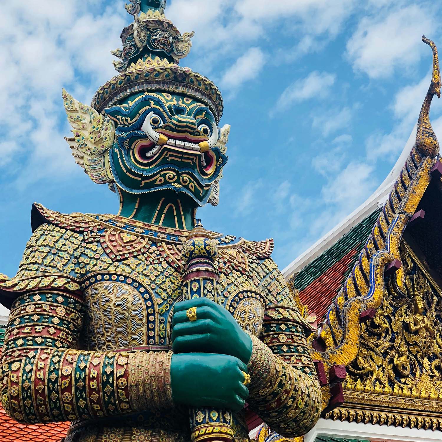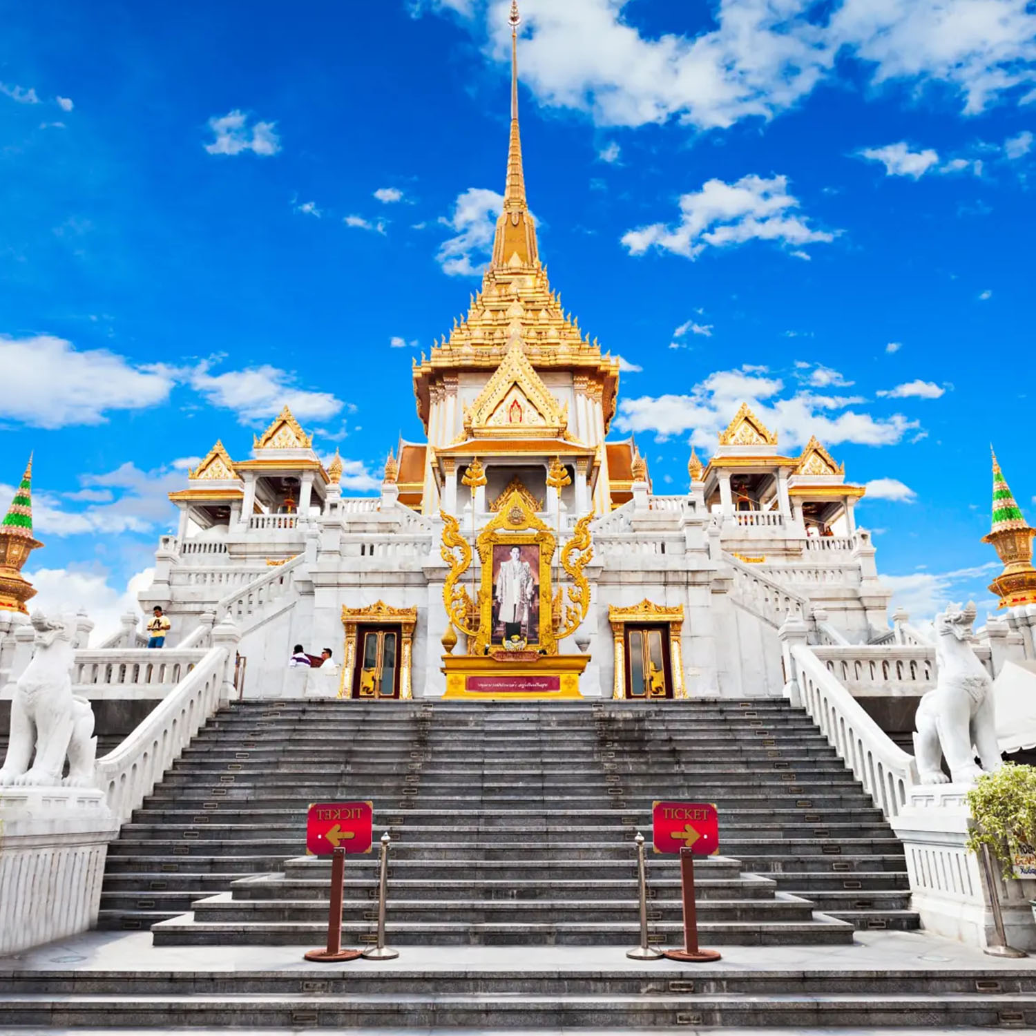 Excursión de medio día para disfrutar los más importantes lugares de Bangkok: empezamos con el Wat Trimitr, antiguo templo cuyo exterior dorado alberga la estatua de Buda de oro macizo más grande del mundo. Con un peso de 5,5 toneladas y una altura de 3 metros. Pasando por China Town, continuamos hasta el Wat Pho, el gran complejo real de templos que alberga un Buda Reclinado de 46 metros de longitud y los chedis (tumbas) de los reyes. Uno de los templos más antiguos de Bangkok, el Wat Pho, fue declarado monasterio real durante el reinado del rey Rama I. Terminamos la excursión visitando el Gran Palacio, uno de los más bellos ejemplos de las cortes de Siam. Aquí se pueden admirar palacios usados en distintas ocasiones: el palacio de los funerales, el palacio de las recepciones, la sala del trono, la sala de la coronación, la casa de los invitados reales y el maravilloso templo del Buda Esmeralda.Visita de taller y joyería de la artesanía tailandesa de las piedras semipreciosas del país.