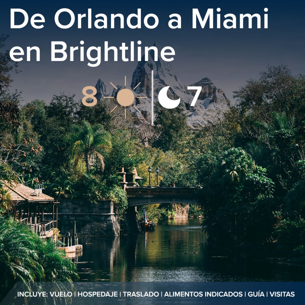 Disfruta 8 días en Orlando y Miami, con vuelos, alojamiento y boletos para el tren Brightline que conecta ambas ciudades. ¡Un viaje cómodo y emocionante entre dos destinos icónicos de Florida!