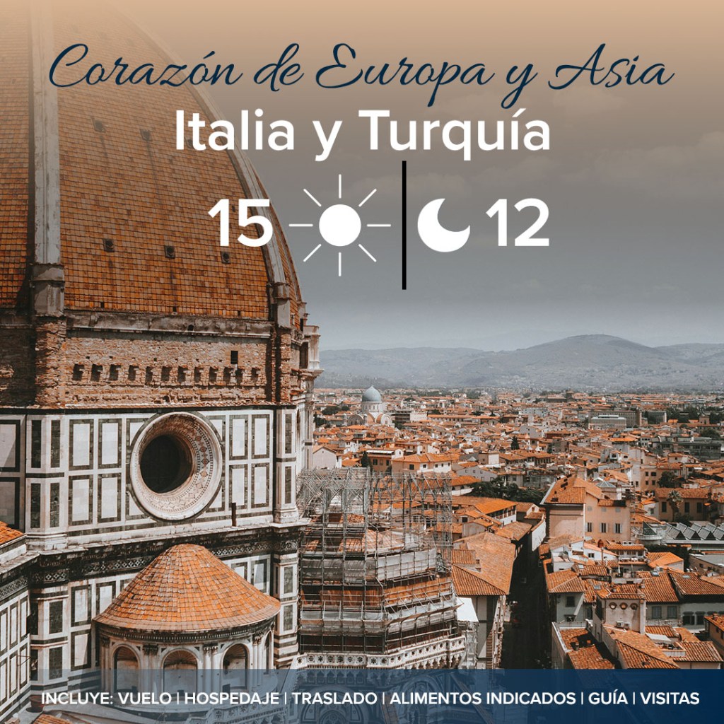 Viva la magia de dos mundos en un solo viaje: 15 días explorando las maravillas de Italia y Turquía. Sumérjase en el arte renacentista de Florencia, la grandiosidad de Roma, la historia de Estambul y los paisajes surrealistas de Capadocia.