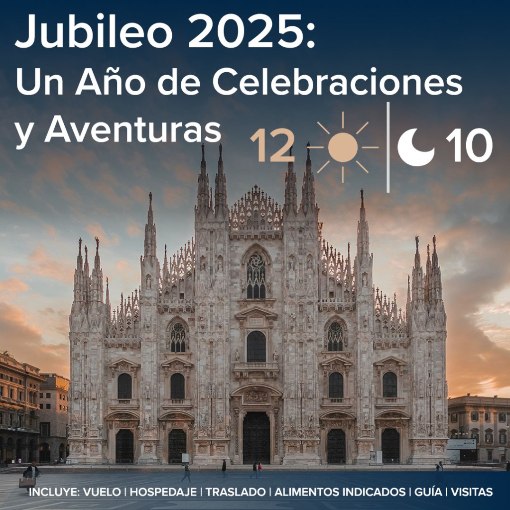 El «Jubileo 2025» es un viaje de 12 días que recorre Italia, visitando ciudades emblemáticas como Roma, Venecia, Verona, Milán, Cinque Terre, Pisa, Florencia, San Gimignano, Asís, Nápoles, Capri, Sorrento y la Costa Amalfitana.