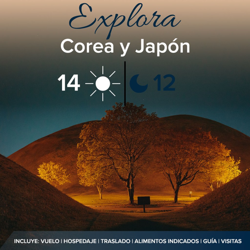 Recorre Japón y Corea en 14 días, visitando Tokio, Kioto, Osaka, Seúl y más, con vuelos, alojamiento, desayunos y traslados incluidos. ¡Una aventura única en Asia!